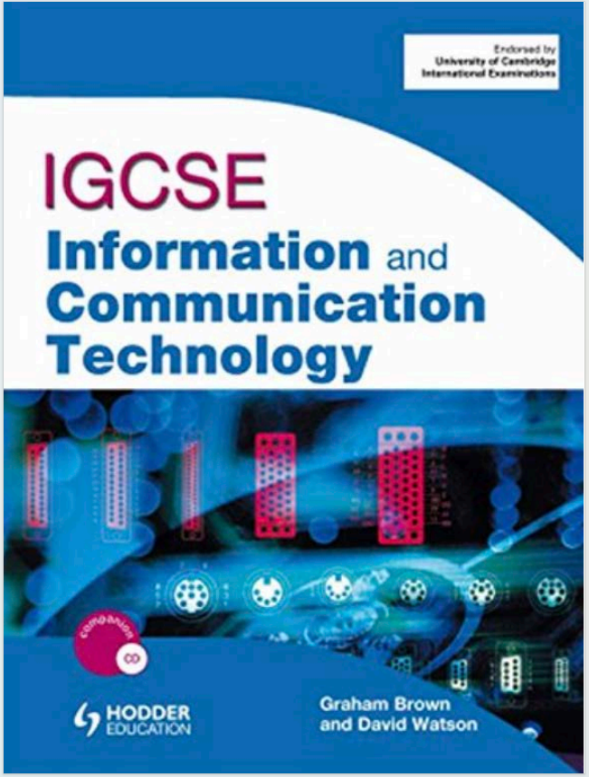 这本书是 "IGCSE Information and Communication Technology",由 Graham Brown 和 David Watson 编写,出版方为 Hodder Education。它是剑桥 IGCSE 信息与通信技术(ICT)课程的官方推荐教材之一,专为帮助学生掌握 ICT 理论知识和实践技能而设计。本书内容全面覆盖 IGCSE ICT 课程大纲,并提供丰富的实践活动和考试技巧指导。