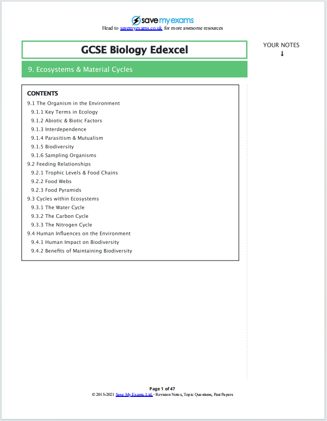 GCSE生物复习笔记下载《GCSE Biology Edexcel:Ecosystems & Material Cycles》