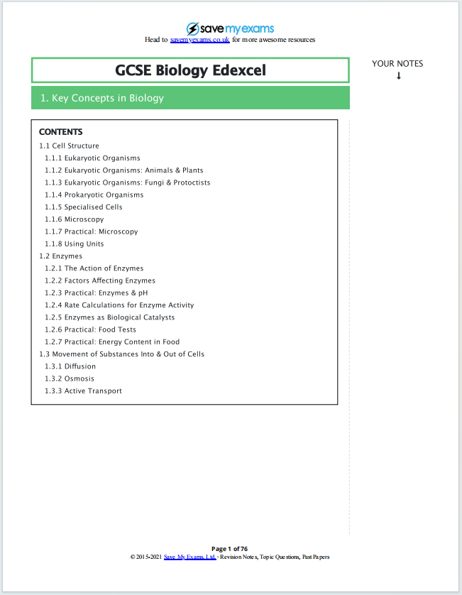 内容范围: Edexcel GCSE生物课程大纲中的 第1单元:生物学的关键概念