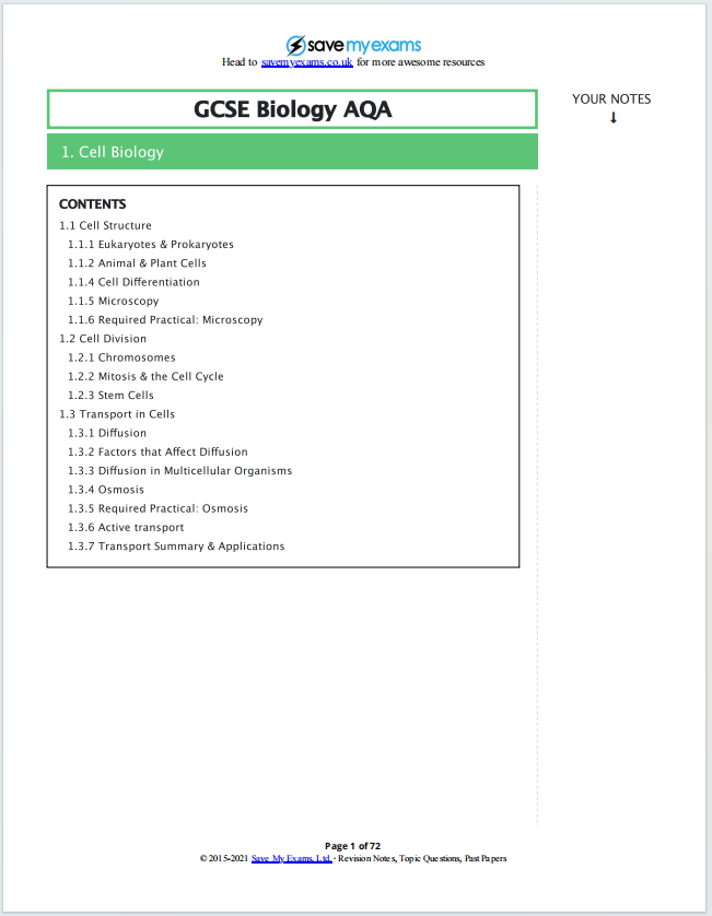 这是 Save My Exams 提供的 GCSE Biology AQA Revision Notes,专为备考 AQA GCSE 生物课程设计。这份资源以清晰的结构和重点内容总结,为学生提供高效复习工具。