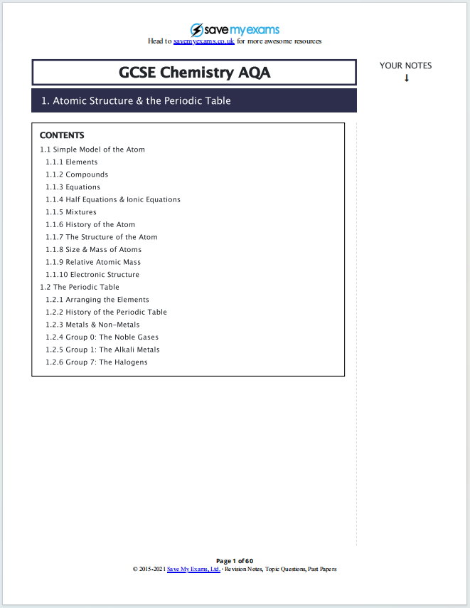 IGCSE化学复习笔记下载《GCSE Chemistry AQA Revision Notes Atomic Structure & the Periodic Table》