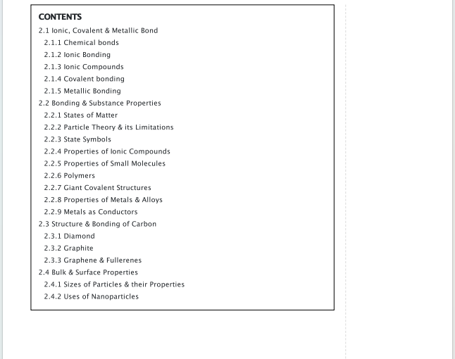 物质类型:介绍由这些键构成的物质,如离子化合物、简单分子、巨型共价结构和大块金属。
