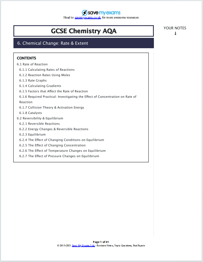 GCSE化学复习笔记下载《GCSE Chemistry AQA: Chemical Change: Rate & Extent》
