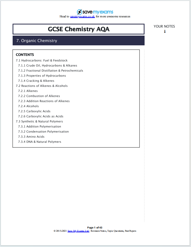 资料标题: GCSE Chemistry AQA Revision Notes - Chapter 7 (GCSE化学AQA考试局修订笔记 - 第七章)