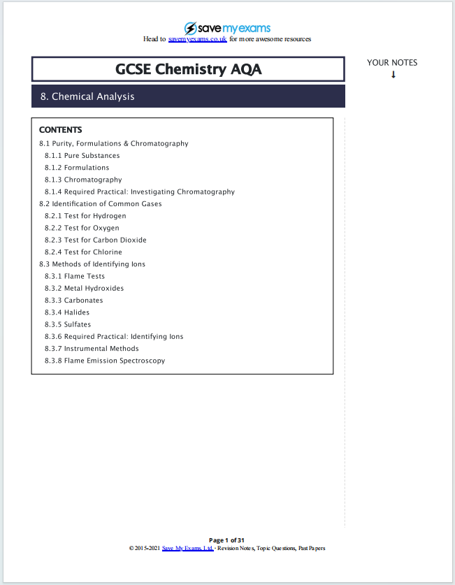 GCSE化学复习笔记下载《GCSE Chemistry AQA: Chemical Analysis》