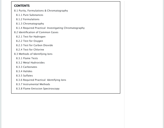 这份资料是 《GCSE Chemistry AQA》修订笔记的第八章,主题是化学分析。这一章是化学的“侦探工作”,专注于确定物质的组成和纯度。它提供了鉴定未知化学物质的一系列经典和现代的实验技术。以下为您进行全面详细的介绍。