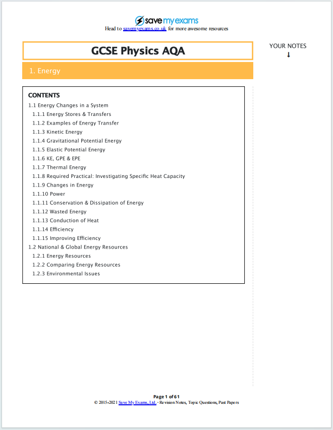 这是由 Save My Exams 出品的 《GCSE Physics AQA》 复习资料,内容覆盖了 AQA 考试局 GCSE 物理大纲。