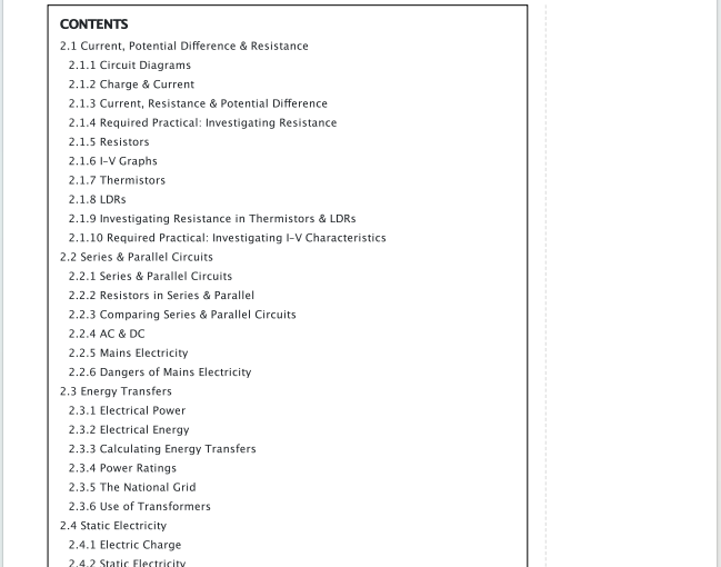 内容范围: 涵盖了AQA GCSE物理课程大纲中的 第2单元:电学