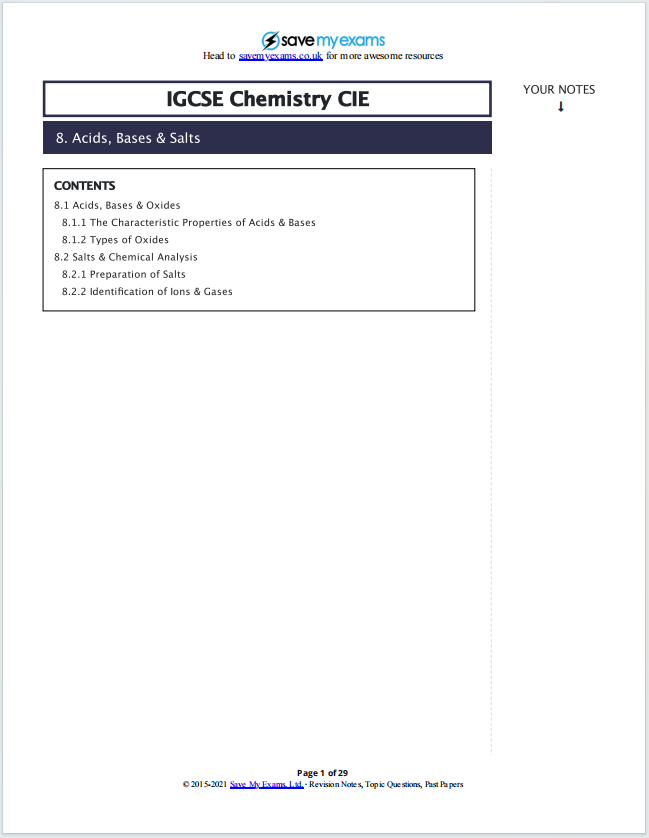 标题:IGCSE Chemistry CIE — Chapter 8: Acids, Bases & Salts