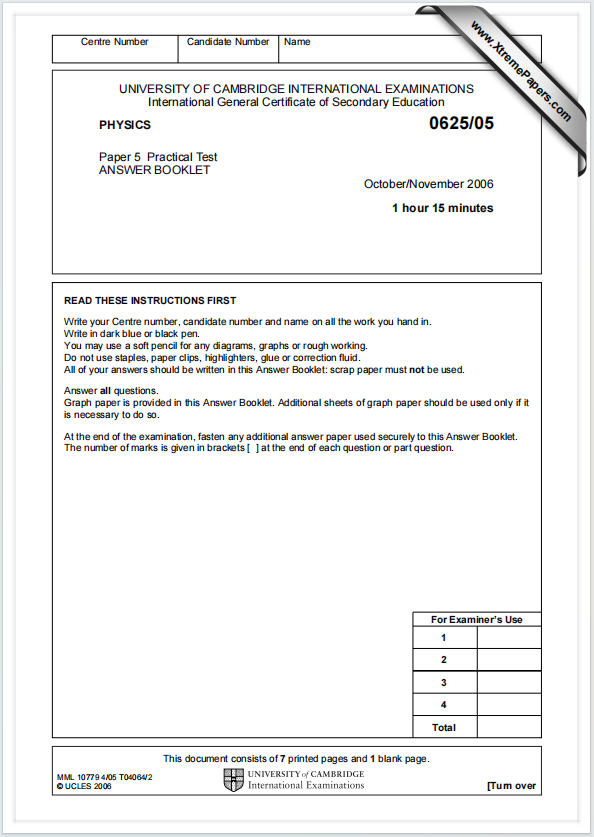 - Paper 5 Practical Test Answer Booklet