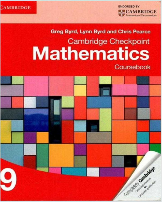 这是 《Cambridge Checkpoint Mathematics Coursebook 9》,由 Greg Byrd, Lynn Byrd 和 Chris Pearce 编写,属于剑桥国际考试(Cambridge International Examinations)认可的教材系列。此书是为剑桥中学课程(Cambridge Lower Secondary Programme)设计的数学教材,适用于 7-9 年级学生(通常是 11 至 14 岁)。这本书是 Checkpoint 数学系列的第三级,帮助学生为剑桥 Checkpoint 测试和更高级的 IGCSE 数学课程打下坚实基础。