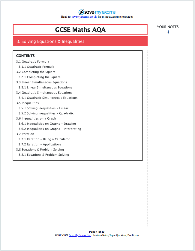 这是 《GCSE Maths AQA》 复习资料的 第3章:《解方程与不等式》。这一章是代数学习的深化和综合应用,涵盖了GCSE数学中一些最具挑战性的主题。以下是关于这一章的全面详细介绍: