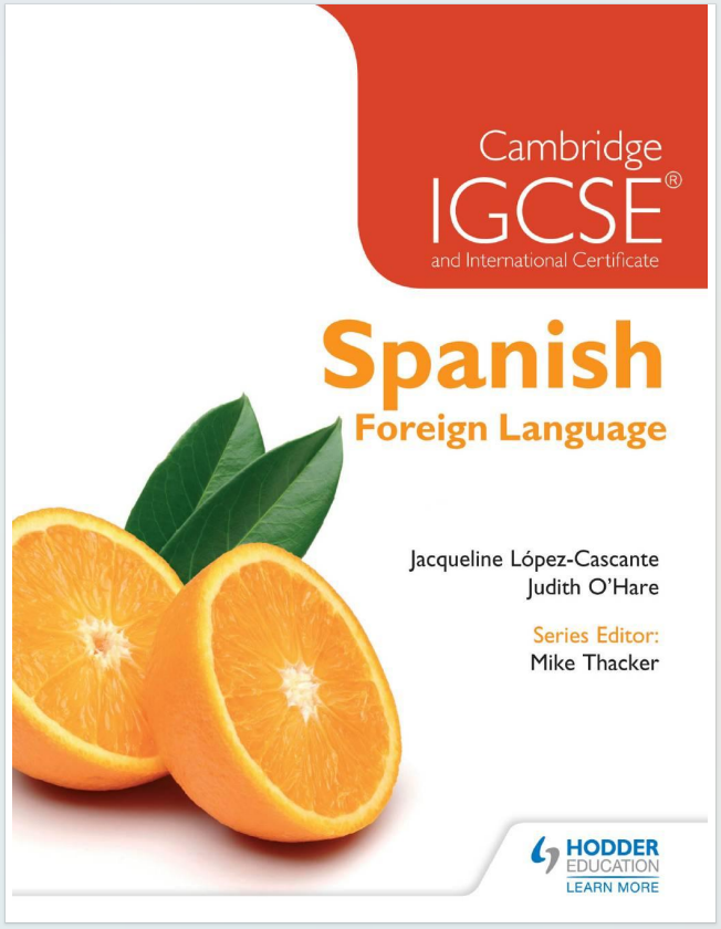这本书是 "Cambridge IGCSE Spanish as a Foreign Language Coursebook",由 Jacqueline López-Cascante 和 Judith O’Hare 编写,专为剑桥 IGCSE 西班牙语作为外语课程(0530)设计。它由 Hodder Education 出版,是剑桥国际考试(CIE)官方推荐的教材之一,旨在帮助学生系统学习西班牙语作为外语课程的核心技能,并为考试做好充分准备。